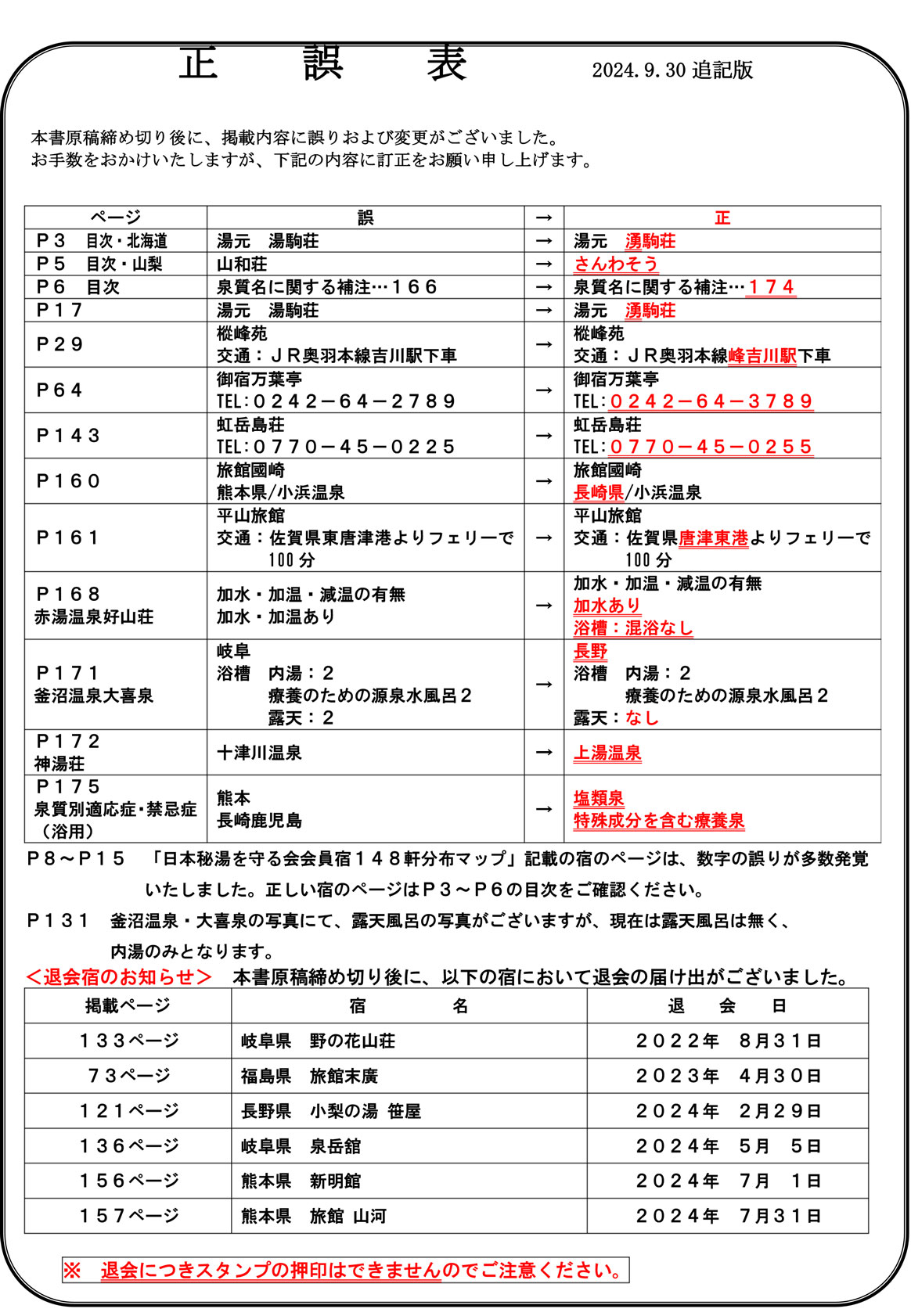 「日本の秘湯」22版 正誤表のお知らせ(2024/09/30追記)